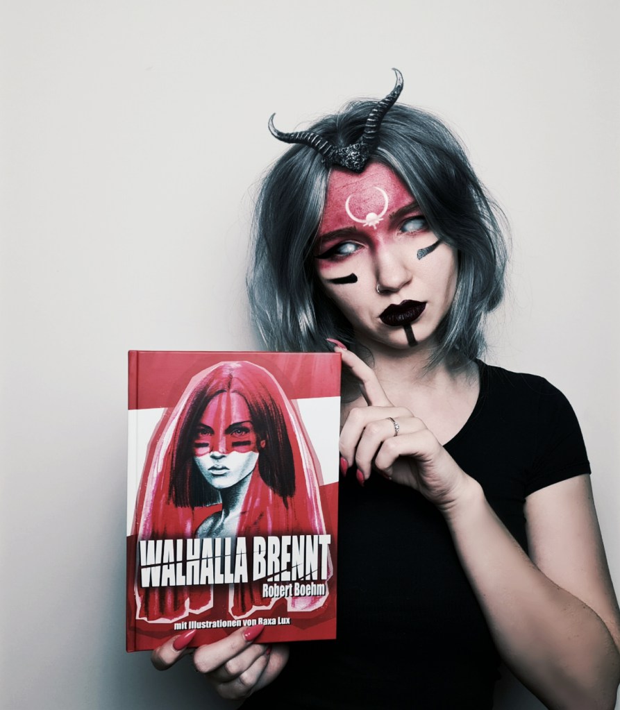 Die Kurzgeschichte „Walhalla brennt“ habe ich bereits bewertet (nicht rezensiert), als ich die Anthologie des SadWolf Verlages rezensiert habe, in der diese Geschichte ebenfalls erhalten ist [siehe Rezension – Anthologie]. Die Bewertung fiel absolut positiv aus, denn diese Geschichte im Einzelnen hat bei meiner Beurteilung 5/5 Punkte bekommen. Als ich diese Ausgabe entdeckt habe, wollte ich der Geschichte unbedingt noch eine individuelle Rezension widmen, weil sie mir sehr im Gedächtnis geblieben ist. Außerdem werde ich in dieser Rezension nicht nur die Geschichte beurteilen, sondern auch die komplette Aufmachung des Buches, das wunderbar düstere und liebevoll geschaffene Illustrationen ziert.